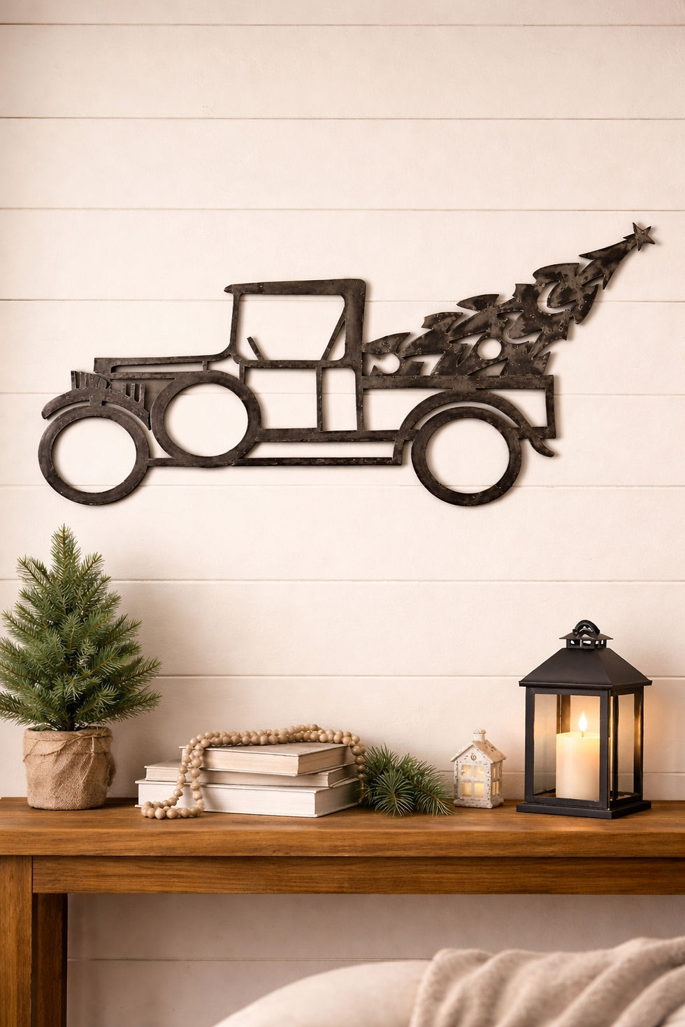 Vintage Christmas Tree Truck Metal Wall Art